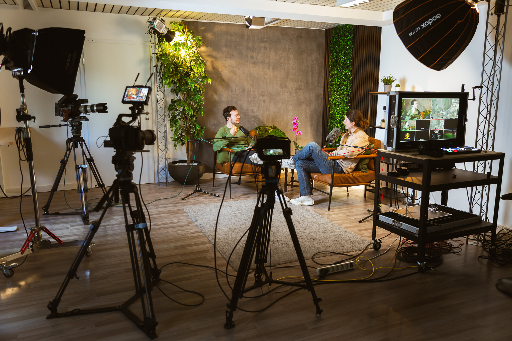 Neben Kamera- und Lichttechnik bietet unser Studio die perfekte Akustik für die Aufzeichnung von Podcasts.